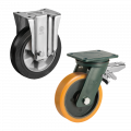 Большегрузные колеса используется для оснащения складского, транспортного и строительного оборудования. Колесные платформы применяются для передвижной аппаратуры и различных приспособлений. Грузоподъемность элемента обеспечивает его надежность в сложных условиях. Для фиксации установленного оборудования узел может иметь тормоз, а маневренность обеспечивает поворотный механизм.
