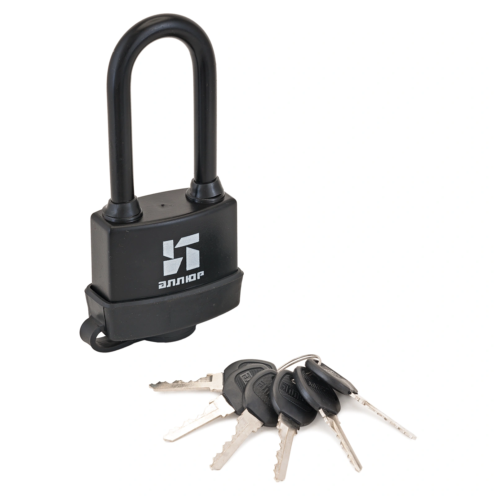 Замок навесной, всепогодный, с одним секретом и длинной дужкой.