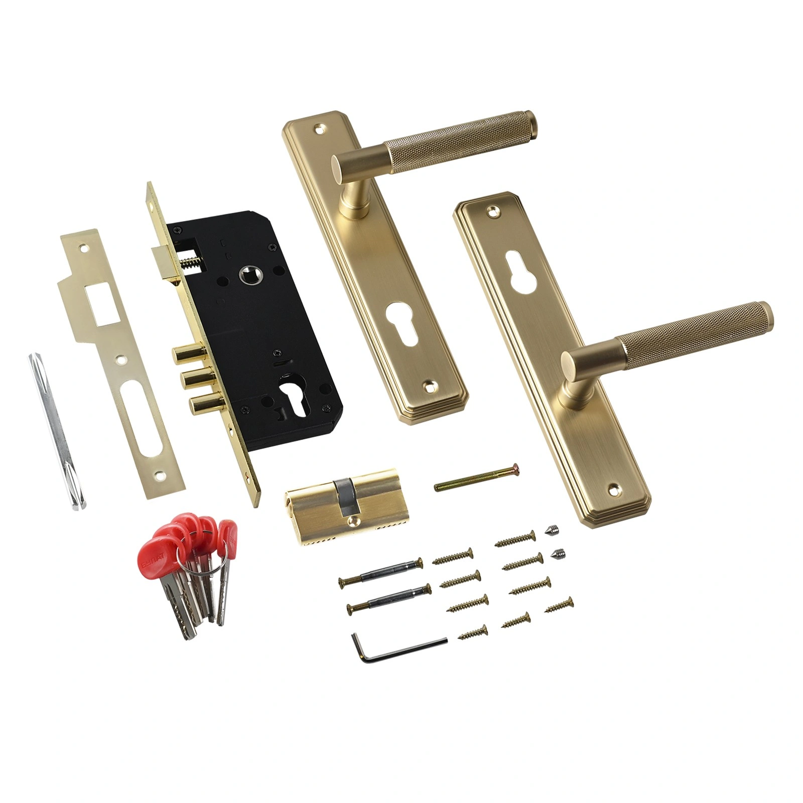 Комплектация: латунный цилиндровый механизм 62 мм, 5 перфоключей, ответная планка, винтовые стяжки, саморезы. Сертифицирован в РФ. Гарантийный срок - 5 лет