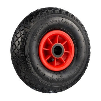 Колесо 1120-255-1, диаметр 255мм., пневмо, игольчатый подшипник (ось 20мм.). Грузоподъемность 150кг. Пневматические колеса под ось 20мм. Пластиковый сердечник. В оси колеса роликовый (игольчатый) подшипник. Грузоподъемность колеса 150кг., диаметр колеса 255мм., ширина колеса 82мм. Такой тип колёс отличается своей упругостью, мягкостью и тихой эксплуатацией. Может использоваться на рыхлых поверхностях. Пневматические колеса используются для смягчения возникающих при движении ударов, вибраций. Благодаря маневренности и проходимости пневматических колес, оборудование легко и плавно двигается, гася вибрации неровного полового покрытия. Поэтому их в первую очередь ставят на тележки для перевозки хрупкого груза и бытовой техники, а так же на тележки для перевозки воды. Они прекрасно подходят для передвижения не только по дорожным покрытиям, но и за их пределами: по грунту, траве, песку, щебню, снегу, грязи.