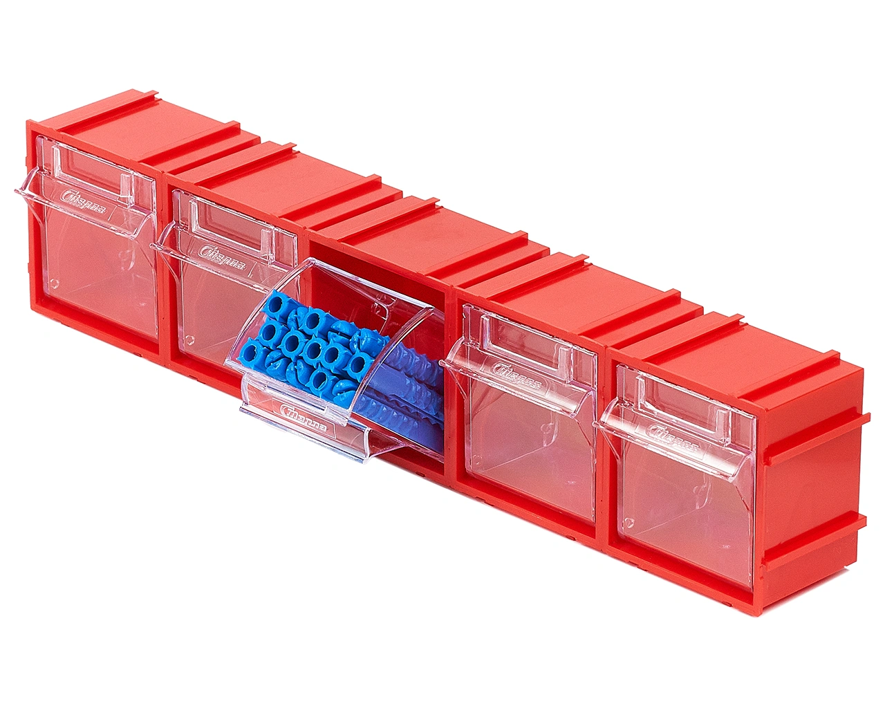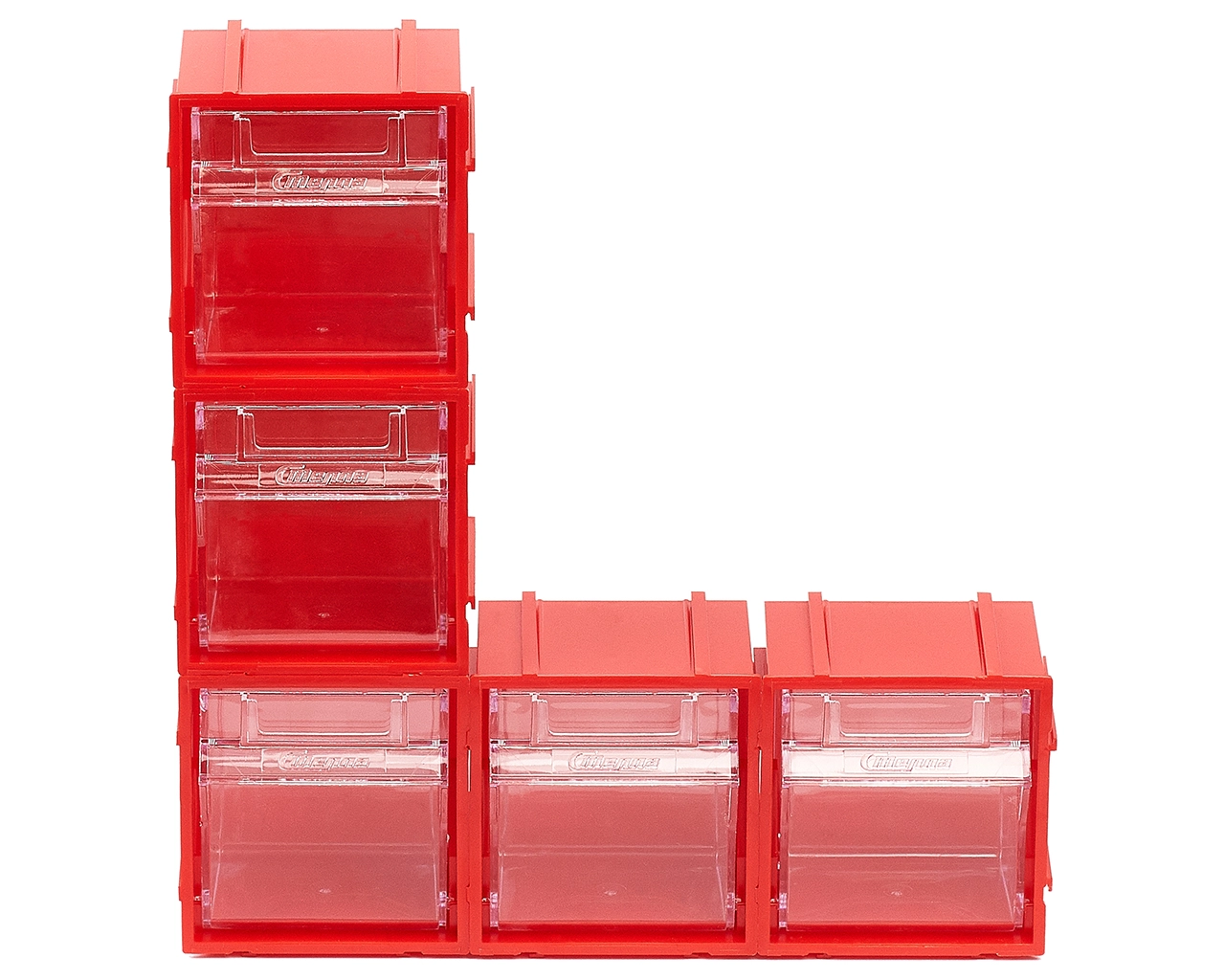 Комплект из 5-ти коробов откидных Стелла-техник F-70-1-К5 (70х60х76мм.) красный, прозрачный служит для хранения мелкоштучных предметов. Данные короба с помощью специальных пазов соединяются друг с другом по всем четырем сторонам, благодаря чему, пользователь может выстроить систему хранения по желаемым ему габаритным размерам. Внутренние ячейки короба не подвержены случайному опрокидыванию. Откидная ячейка обеспечивают быстрый доступ к необходимым предметам. В случае необходимости полного высыпания или наполнения внутренние ячейки легко извлекается. Полезный внутренний размер ячеек 56х43х47мм. Специальный пластик, из которого выполнен короб, выдерживает значительные нагрузки и обладает оптимальной эластичностью. На задней стенке короба присутствуют отверстия для крепления, через которые можно легко прикрепить к стене, как отдельно каждый, так и целый собранный набор из коробов, любого количества. Обзорность содержимого сквозь прозрачные внутренние ячейки, наличие отсека для информационных бирок, легкое извлечение внутреннего короба для опустошения и наполнения, все это является неоспоримым преимуществом откидных коробов серии F. Температура эксплуатации от -10 до + 70С.