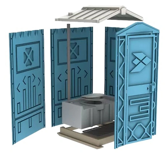 - Надежность. Полиэтилен выдерживает нагрузку до 300 кг/см3, литой накопительный бак и металлический каркас в конструкции двери и арки – за эксплуатацию туалетной кабины можно не волноваться!