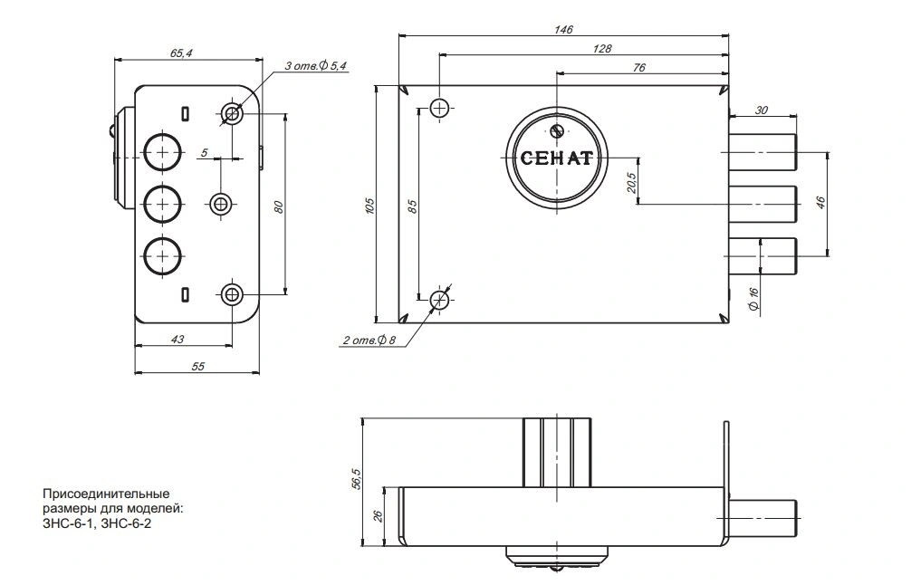 Замок ЗНС-6-2 — три стержня ригеля, открывается и закрывается с наружной и внутренней сторон комплектным ключом.