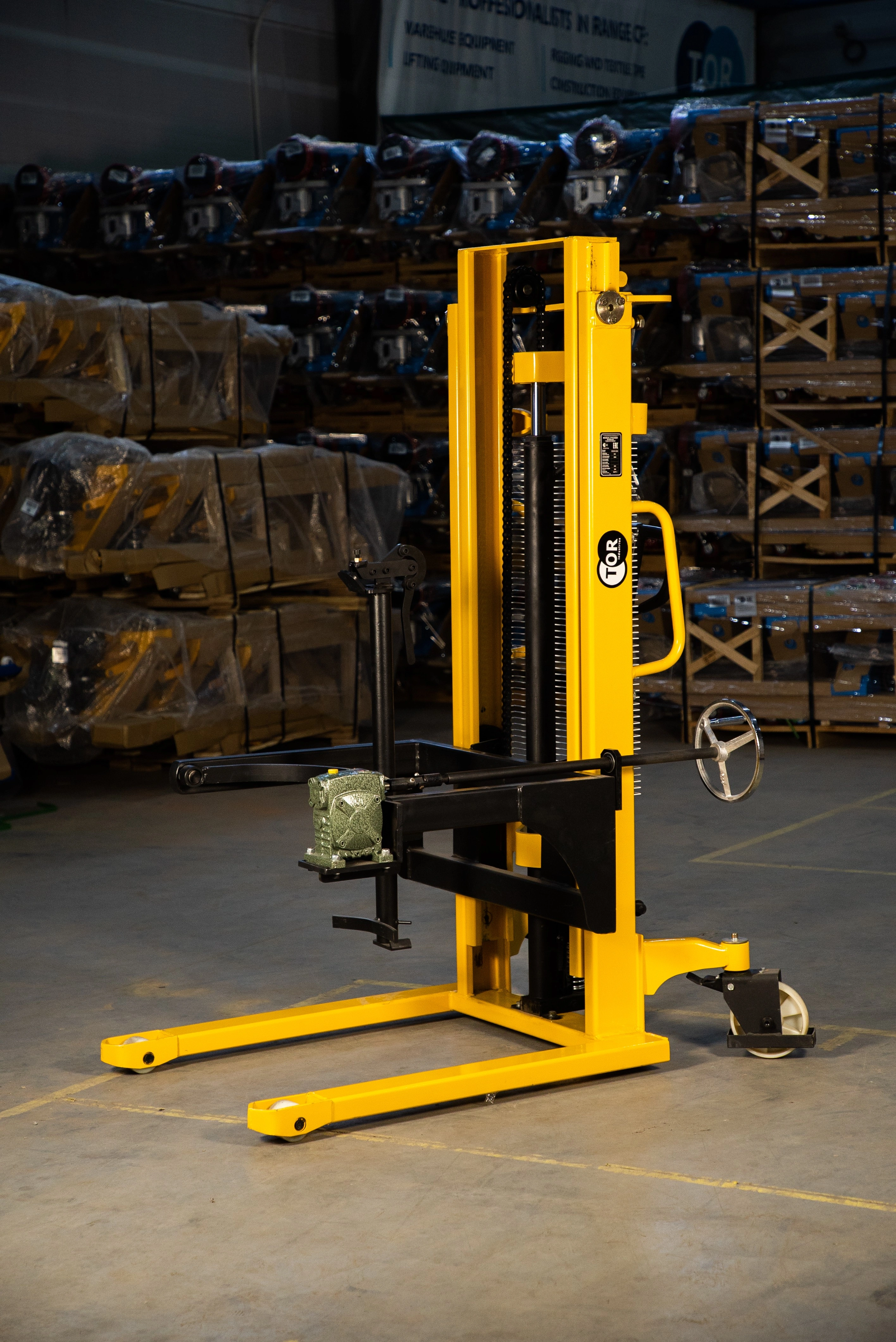 Штабелер бочкокантователь TOR WDS500-2500 — Специальный штабелер, сделанный для поднятия, перевозки и кантования (наклона, переворота) бочек. Модель оснащена надежным держателем бочек и червячным ручным редуктором для переворота бочки. Штабелер простой в обращении и не прихотлив в обслуживании. Максимальный вес бочки может быть 500 кг, что в принципе покрывает практически все материалы, тарированные в бочки. Дополнительным плюсом этой серии бочкокантователей является то, что передние колеса всего 78 мм в диаметре поэтому с помощью него можно заезжать под паллет для подхвата бочки. Серия штабелеров ТОR WDS поднимает бочки на высоту от 1,6 до 3,0 метров. Высота подъема данной модели составляет 2,5 метра что позволяет составлять бочки в несколько ярусов.Складская техника производства TOR – это соединение современных разработок и решений, проверенных временем. Так компания добивается качества и простоты использования своего оборудования. В модельном ряду найдутся как экономичные модели, так и модели для интенсивных нагрузок. Штабелер бочкокантователь TOR WDS500-2500 — Специальный штабелер, сделанный для поднятия, перевозки и кантования (наклона, переворота) бочек. Модель оснащена надежным держателем бочек и червячным ручным редуктором для переворота бочки. Штабелер простой в обращении и не прихотлив в обслуживании. Максимальный вес бочки может быть 350 кг, что в принципе покрывает практически все материалы, тарированные в бочки. Дополнительным плюсом этой серии бочкокантователей является то, что передние колеса всего 78 мм в диаметре поэтому с помощью него можно заезжать под паллет для подхвата бочки. Серия штабелеров ТОR WDS поднимает бочки на высоту от 1.4 до 2.8 метров. Высота подъема данной модели составляет 2.5 метра что позволяет ставить бочки в 2 яруса. Особенности штабелера: •Специальное исполнение для кантования бочек •Защитная решетка для защиты оператора от цепей и груза •Надежный гидравлический механизм подъема и кантования. Подробные технические характеристики штабелера можно посмотреть ниже в разделе технические характеристики. При выборе штабелера обращайте внимание на его основные эксплуатационные характеристики, которые важны для вас. Если нужна консультация специалиста, воспользуйтесь удобным для вас способом связи для получения исчерпывающей информации по выбору штабелера.