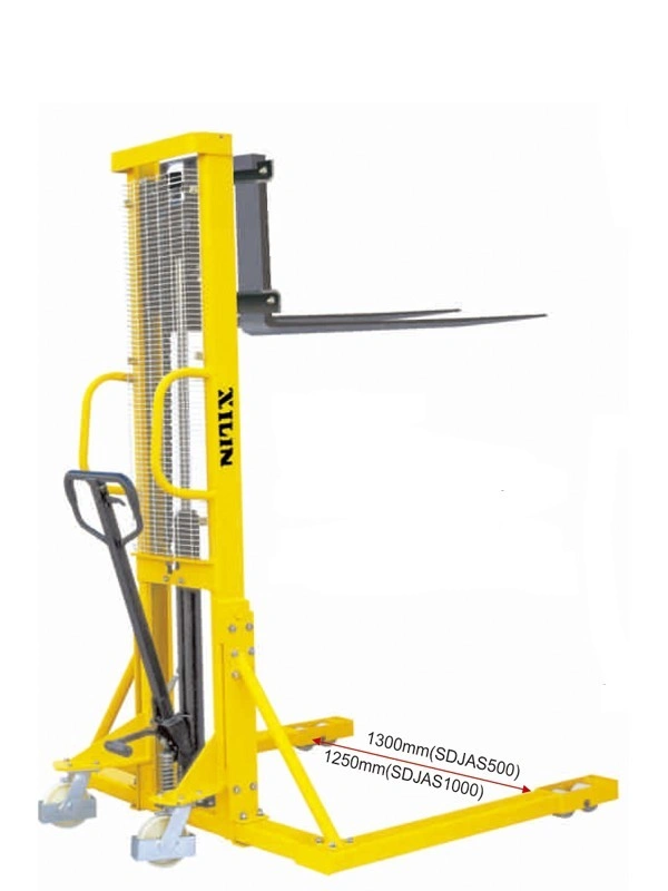 Ручной штабелер XILIN SDJAS500- уникальная модель с раздвижными вилами и расширенными опорами. Возможность регулировки ширины вил 210-745 мм, большое расстояние между опорами и высота подхвата 70 мм позволят обрабатывать нестандартные, низкие и продавленные паллеты с уровня пола. Модельный ряд: Грузоподъёмность 500, 1000 и 1500кг ; высота подъема 1,6-3м. Где используется? Склады малой площади (до 500 м²). Двух и трехуровневое стеллажное хранение. Неотапливаемые помещения (с сезонной заменой масла). Работа с паллетами в условиях умеренной нагрузки. Почему выбирают XILIN SDJAS? Крепкая конструкция – выдерживает ежедневные нагрузки. Безопасность – защита от перегрузок и удобное управление. Универсальность – подходит для разных видов складов. Простота обслуживания – минимум требований к эксплуатации. Преимущества XILIN SDJAS Расширенные вилы и опоры- работа с нестандартными паллетами. Надежный гидравлический узел – плавный подъем даже при максимальной нагрузке. Предохранительный клапан – защита от перегрузки и безопасность оператора. Прочная стальная мачта – устойчивость к деформациям и долговечность. Износостойкие нейлоновые колеса (Ø150 мм) и сдвоенные подвилочные ролики. Механический тормоз и стальная защита – точность и безопасность маневров. Рукоять с полиуретановой накладкой – удобство оператора при длительной работе. Центр загрузки 600 мм – оптимальное распределение веса.