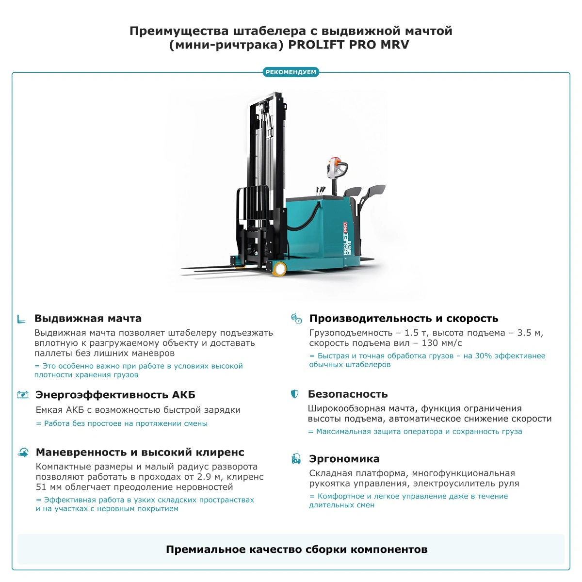 - Эргономичная рукоять с электроусилителем снижает усилия при управлении и повышает точность маневров, позволяя оператору дольше работать без усталости.