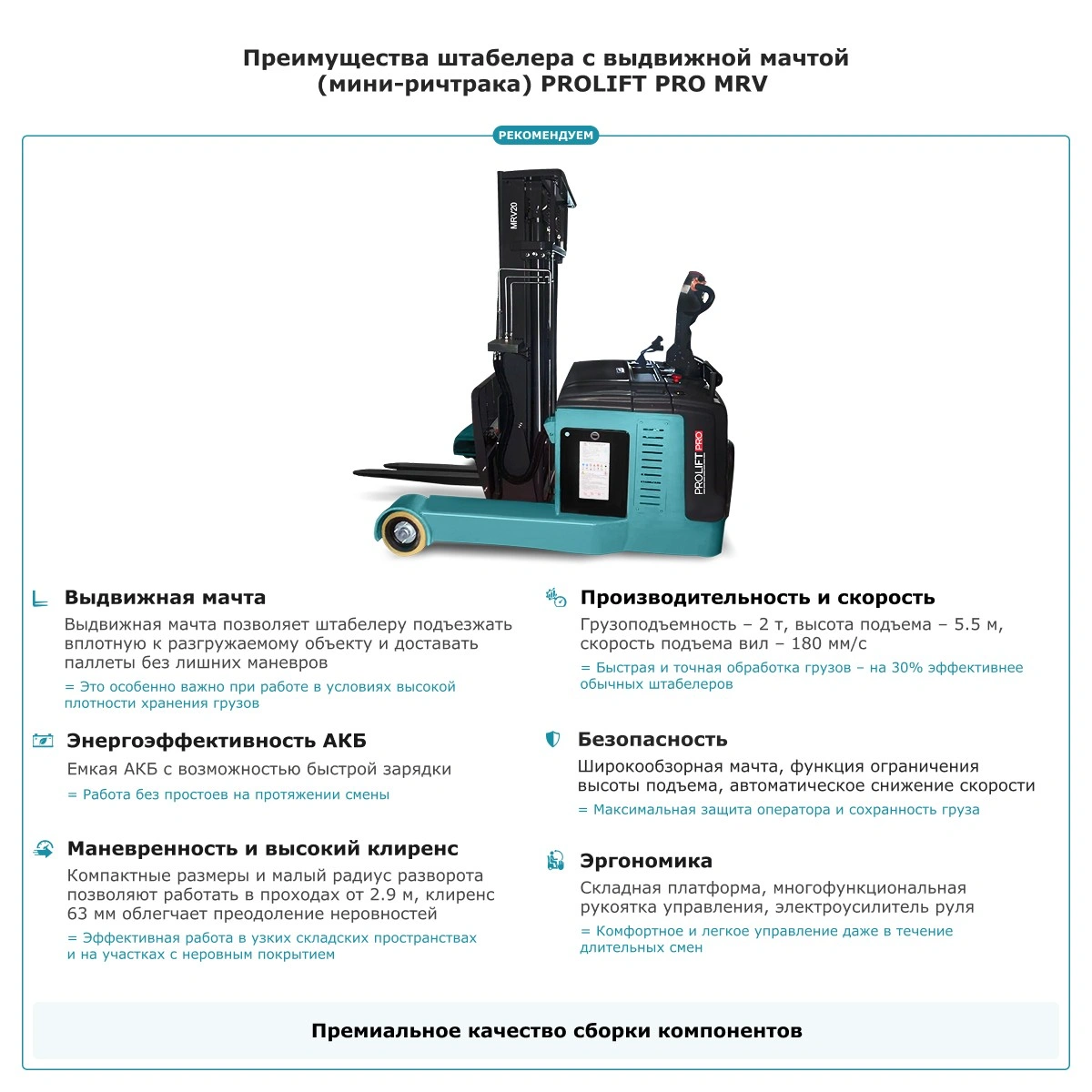 - Эргономичная рукоять с электроусилителем снижает усилия при управлении и повышает точность маневров, позволяя оператору дольше работать без усталости.