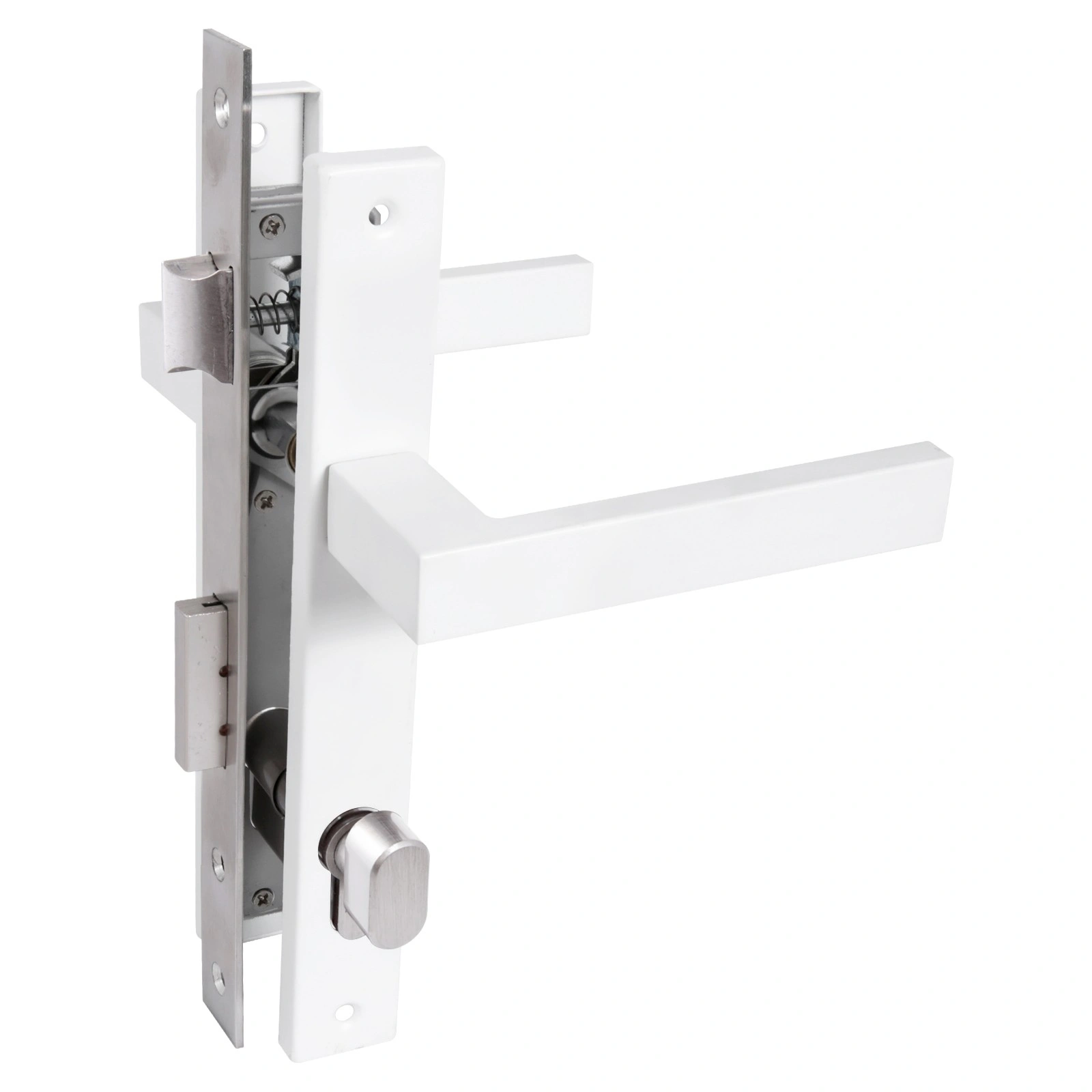 Прямоугольный ригель, вылет 10,5 мм. Универсальная защелка. Корпус и торцевая планка из нержавеющей стали. Межосевое расстояние 85 мм. Удаление ключевого отверстия 20мм. Полимерное покрытие ручек по каталогу RAL, материал сталь. Механизм секрета с перфоключом, длина 70 мм, ключ/вертушка. 5 ключей. Материал - цинковый сплав.
