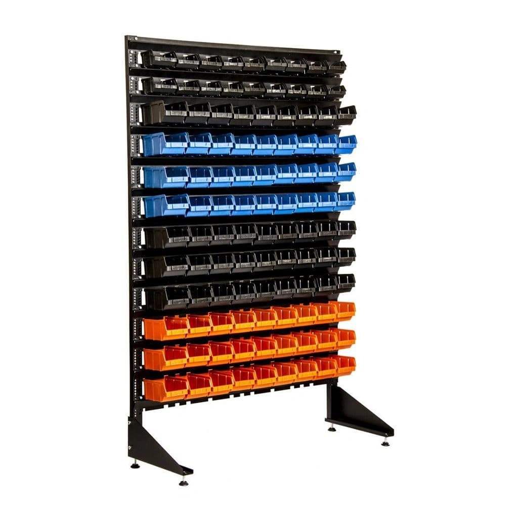 Стенд разработан специально для систематизации, хранения различных комплектующих, деталей, запчастей, крепежных и строительных материалов: болты, гайки, сверла, подшипники, метизы, фитинги, сантехника, зажимы, заклепки и т.д.