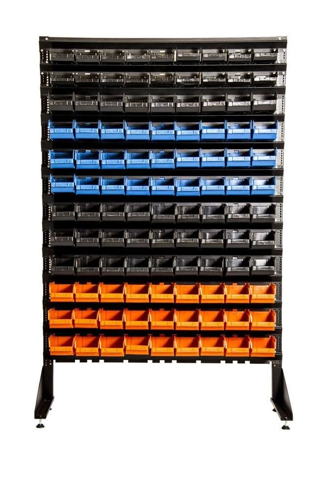 Стеллажи с ячейками упрощают работу с большим ассортиментом комплектующих и значительно сокращают время их поиска на складе или в магазине.