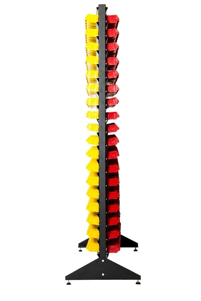 Стеллажи с ячейками упрощают работу с большим ассортиментом комплектующих и значительно сокращают время их поиска на складе или в магазине.