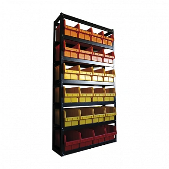 Стеллаж складской с пластиковыми ящиками 700 предназначен для размещения в контейнерах мелкогабаритных комплектующих и крепежа. Идеально подходят в качестве витрин в магазинах, или для хранения деталей в мастерских, на складах, на производстве и т.д.