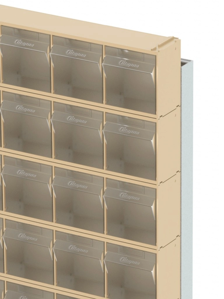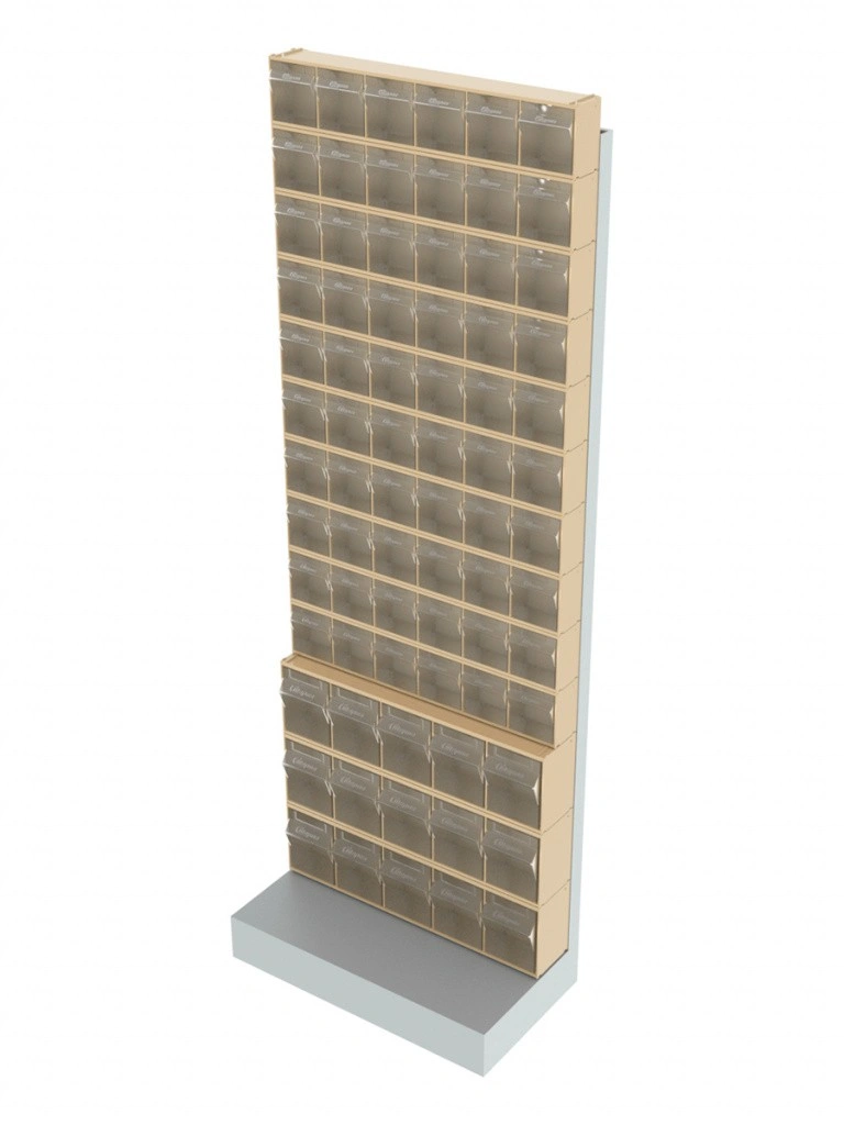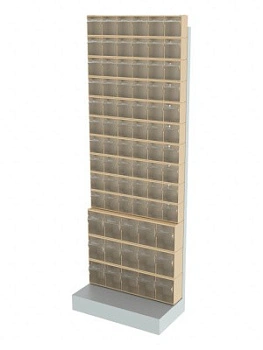Стойка бежевая напольная Стелла-техник 404-00-10-03-B 610х325х1650) представляет собой удобную систему хранения на основе откидных коробов. Стойка подойдет для выставочных залов, магазинов, офисов, складов. Комплектация: Рама FOX (610х325х1650) V404 напольная односторонняя с основанием - 1 шт.; Короб откидной Стелла-техник F-600-6 , 600х96х112мм, 6 ячеек, красный, прозрачный – 10 шт.; Короб откидной Стелла-техник F-600-5 , 600х140х168мм, 5 ячеек, красный, прозрачный – 3 шт.; Упаковка. Преимущества: Металлическое основание; Значительная устойчивость; Хорошая вместимость; Длительный срок службы.