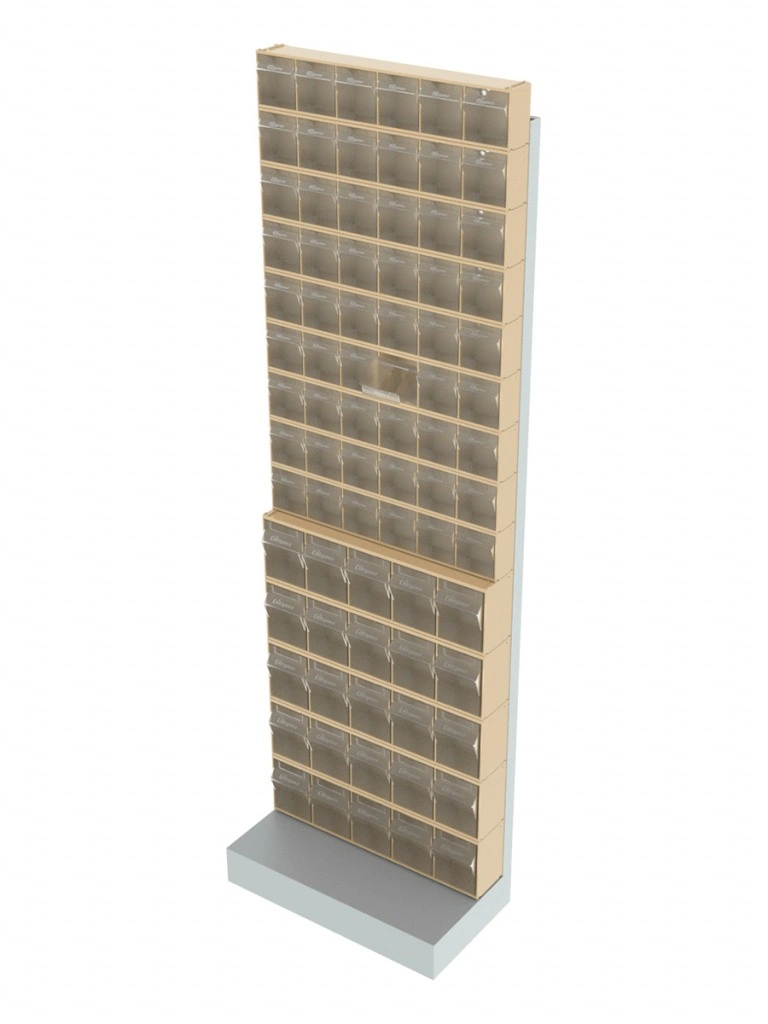 Стойка бежевая напольная Стелла-техник 405-00-09-05-B (610х325х1850) представляет собой удобную систему хранения на основе откидных коробов. Стойка подойдет для выставочных залов, магазинов, офисов, складов. Комплектация: Рама FOX (610х325х1850) V405 напольная односторонняя с основанием - 1 шт.; Короб откидной Стелла-техник F-600-6 , 600х96х112мм, 6 ячеек, красный, прозрачный – 9 шт. Короб откидной Стелла-техник F-600-5 , 600х140х168мм, 5 ячеек, красный, прозрачный - 5 шт.; Упаковка. Преимущества: Металлическое основание; Значительная устойчивость; Хорошая вместимость; Длительный срок службы.