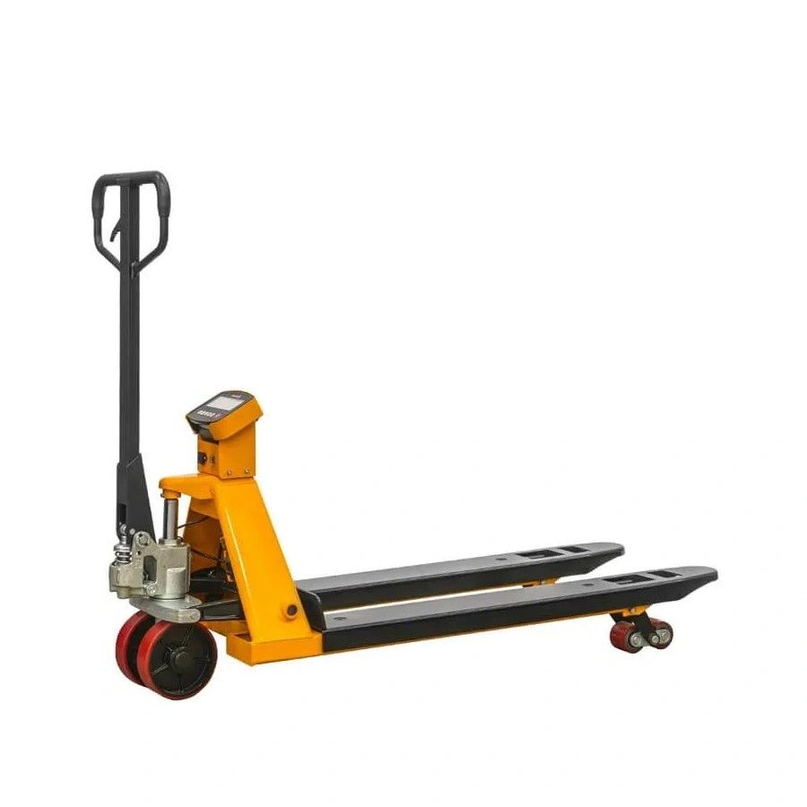 Тележка гидравлическая XILIN BFC25 со встроенным весовым модулем грузоподъемностью 2000кг применяется для погрузочно-разгрузочных работ и перевозки паллетированных грузов. Под вилами располагаются тензодатчики позволяющие взвешивать грузы в любое время. Результаты взвешивания выводятся на яркий LED дисплей. Полиуретановые колеса хорошо поглощают вибрации и ударные нагрузки, не повреждают пол, чрезвычайно устойчивы к порезам и их разрастанию, долговечны в использовании. Могут использоваться в помещениях с грязными полами, не боятся осколков, воздействия масла, бензина и слабых кислот. Где используется? Рекомендуется к использованию на складах со средней и высокой интенсивностью товарооборота. Тележки с весами востребованы на производствах, продуктовых складах и в транспортных терминалах. Значительно сокращают время обработки грузов. Преимущества XILIN BFC20: - Класс точности весового модуля III, степень защиты IP54. - Весовой модуль оснащен функциями тарирования, удержания и сложения веса. - Сигнал о превышении грузоподъемности. - Подсветка экрана для работы при низком уровне освещения. - Цельная конструкция сварного гидроцилиндра, надежна и долговечна. - Сдвоенные подвилочные ролики облегчают заезд на рампы и равномерно распределяют вес груза. - Длина вил 1150мм оптимальна для работы с паллетами стандартных размеров, без потери маневренности. - Полимерная накладка на ручку для комфортной работы при низких температурах.