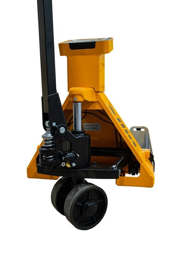 Тележка гидравлическая XILIN BFC25 со встроенным весовым модулем грузоподъемностью 2500кг применяется для погрузочно-разгрузочных работ и перевозки паллетированных грузов. Под вилами располагаются тензодатчики позволяющие взвешивать грузы в любое время. Результаты взвешивания выводятся на яркий LED дисплей. Полиуретановые колеса хорошо поглощают вибрации и ударные нагрузки, не повреждают пол, чрезвычайно устойчивы к порезам и их разрастанию, долговечны в использовании. Могут использоваться в помещениях с грязными полами, не боятся осколков, воздействия масла, бензина и слабых кислот. Где используется? Рекомендуется к использованию на складах со средней и высокой интенсивностью товарооборота. Тележки с весами востребованы на производствах, продуктовых складах и в транспортных терминалах. Значительно сокращают время обработки грузов. Преимущества XILIN BFC25: - Класс точности весового модуля III, степень защиты IP54. - Весовой модуль оснащен функциями тарирования, удержания и сложения веса. - Сигнал о превышении грузоподъемности. - Подсветка экрана для работы при низком уровне освещения. - Цельная конструкция сварного гидроцилиндра, надежна и долговечна. - Сдвоенные подвилочные ролики облегчают заезд на рампы и равномерно распределяют вес груза. - Длина вил 1150мм оптимальна для работы с паллетами стандартных размеров, без потери маневренности. - Полимерная накладка на ручку для комфортной работы при низких температурах.