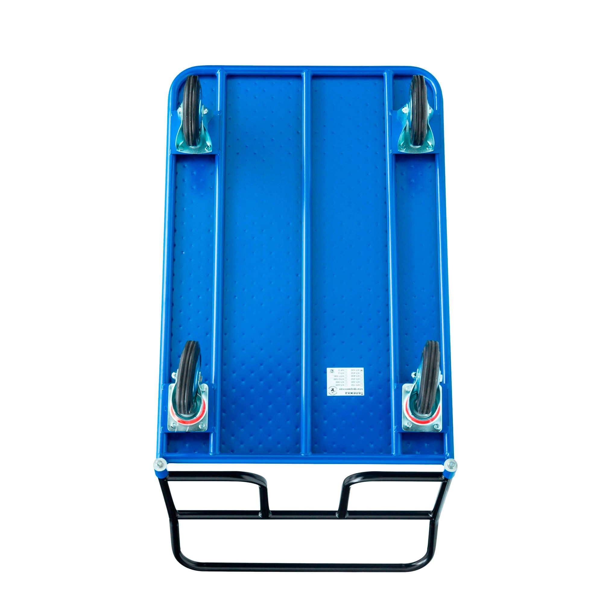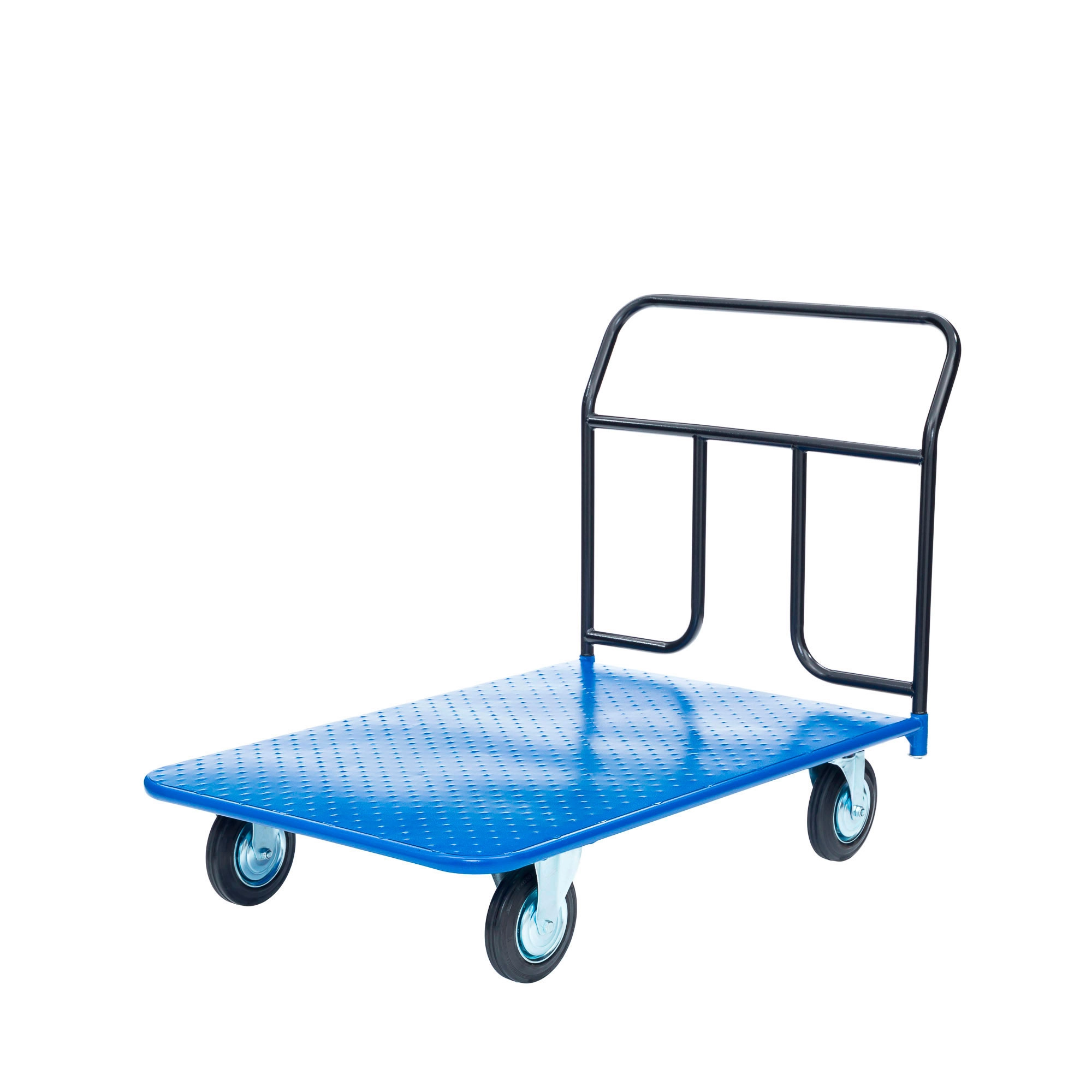 Платформенная 4-х колесная тележка КП-900-200-К используется для перемещения крупногабаритных и тяжелых грузов в складских помещениях. Ручка крепится к платформе болтами, для компактного хранения можно снять, высота ручки 750мм. Металлическая платформа изготовлена из стального листа толщиной 1,2мм., размер платформы 800х1500мм., покрытие полимерное, цвет - синий. Для легкого перемещения тележка КП-900-200-К комплектуется двумя поворотными и двумя неповоротными колесами, изготовленными из высококачественной литой резины, диаметром 200мм., комплектом крепежа. Большая платформа тележки позволяет перемещать крупногабаритные и тяжелые грузы. Грузоподъемность до 550кг.