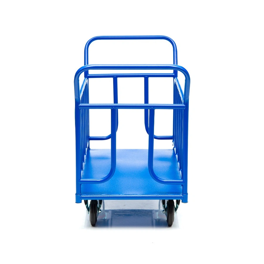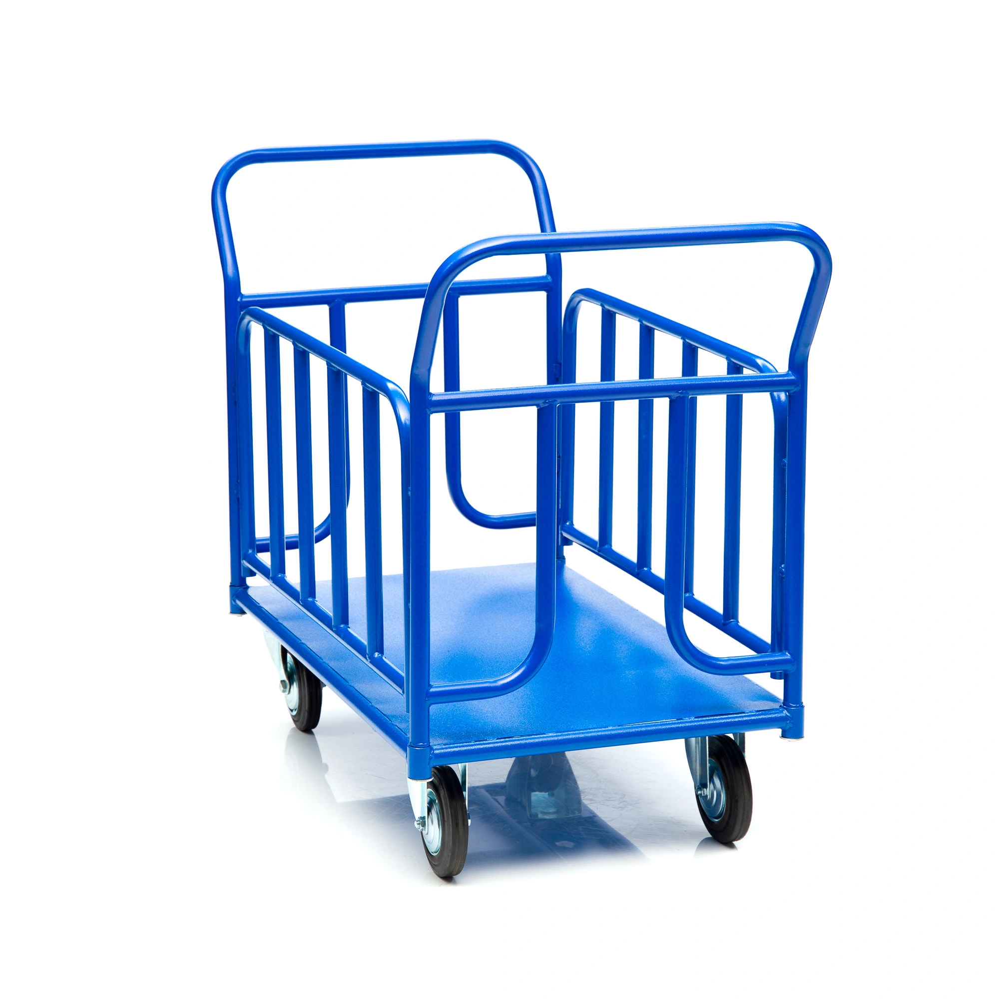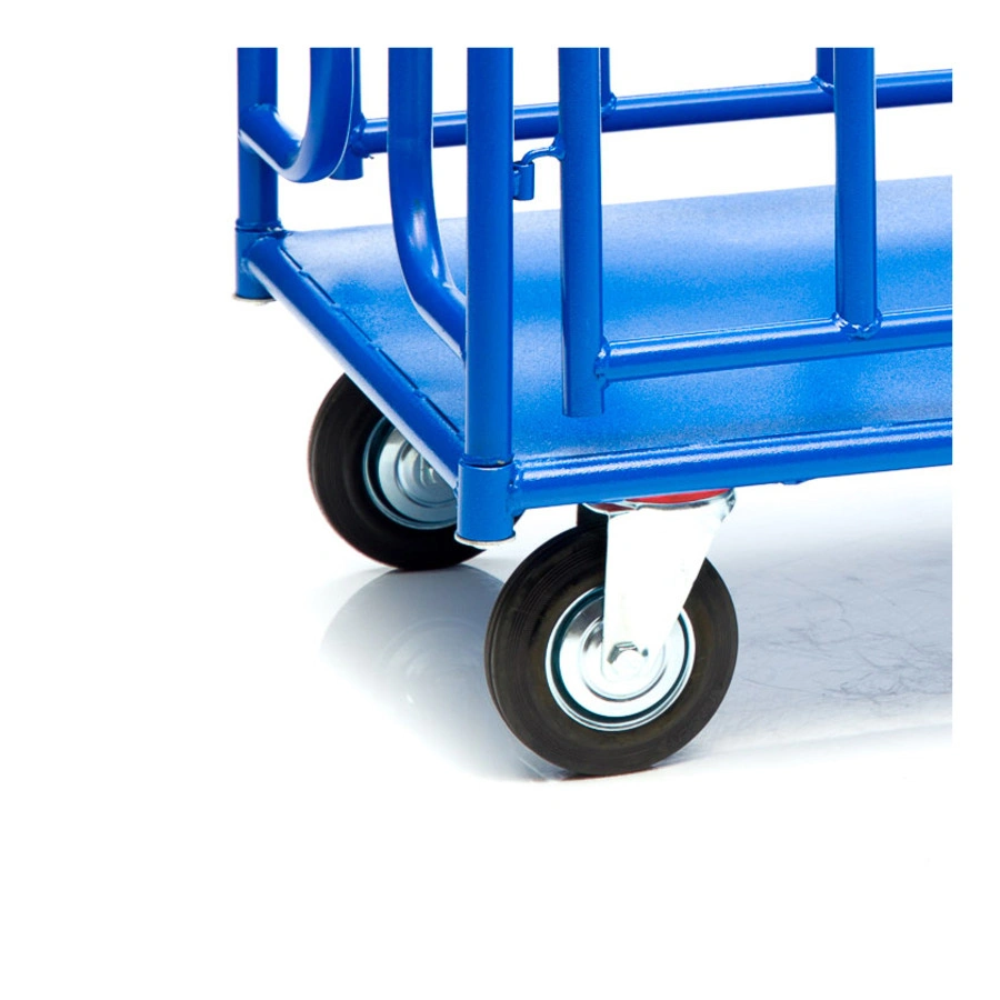 Платформенная 4-х колесная тележка с трубчатыми бортами КПО-300Т-200-К используется для транспортировки различных сборных грузов на оптовых базах и складах. Размер платформы 600х1000мм., Металлический борт груз от падения и ударов, что позволяет перевозить хрупкие предметы и сборные грузы. Ручки и борта тележки снимается для удобства транспортировки и компактного хранения. Высота боковых трубчатых бортов 400мм, высота борта от платформы 480мм., высота ручки 750мм., каркас платформы труба диаметром 28мм., настил металлический лист толщиной 1,2мм., ручка труба диаметром 28мм., толщина 1,5мм. каркас борта труба диаметром 25мм., толщина 1,5мм. Платформа имеет уникальную рельефную противоскользящую поверхность. Покрытие полимерное. Цвет - синий, шагрень. Для легкого перемещения тележка КПО-300Т-200-К комплектуется двумя поворотными и двумя неповоротными колесами, изготовленными из высококачественной литой резины, диаметром 200мм., комплектом крепежа. Грузоподъемность до 550кг.