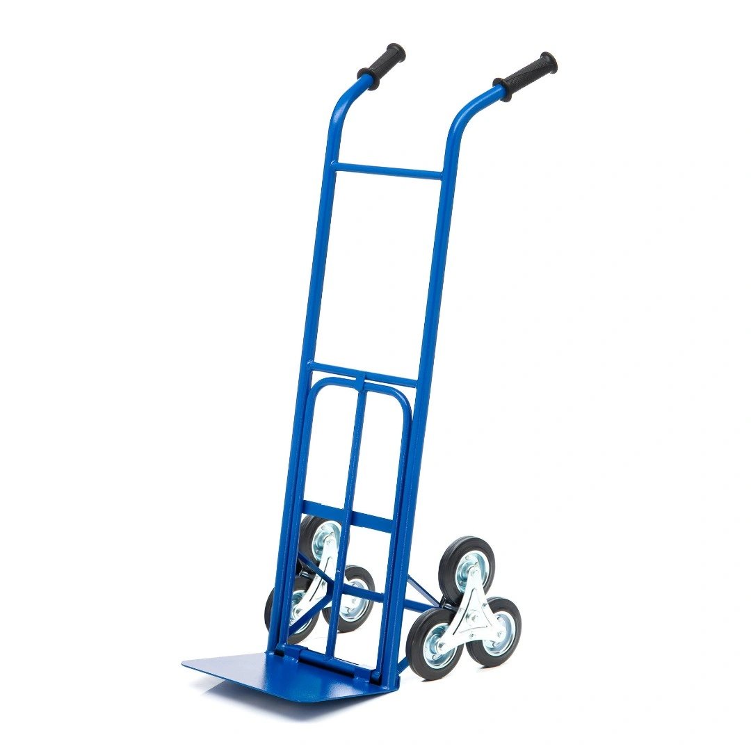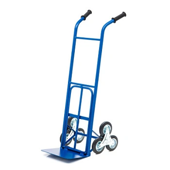 Тележка грузовая КГ-150-ЛС (с откид.полкой), предназначена для транспортировки груза весом до 150 кг. Тележка оснащена парой трехопорных (лестничных) колес, что обеспечивает легкое перемещение по лестнице. Диаметр каждого из 6 колес-150 мм. Покрытие полимерное. Цвет - синий.