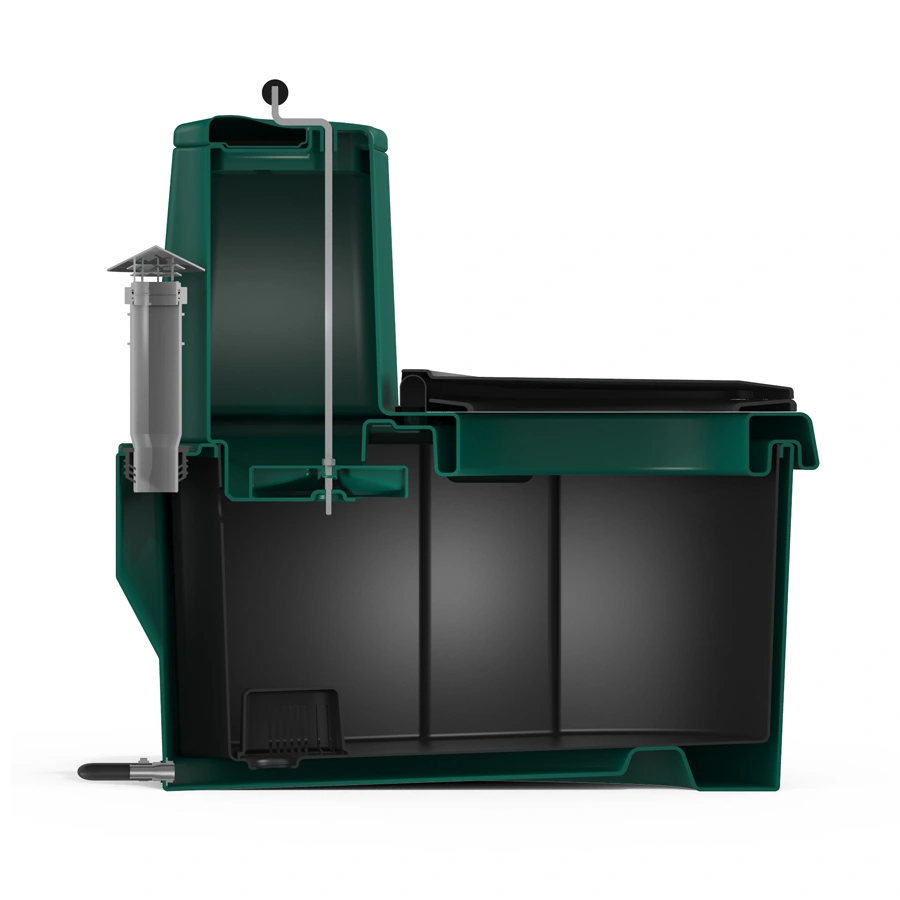 Торфяной туалет РОСА зеленого цвета позволяет с удобством решать организацию туалета на загородном отдыхе. Рассчитан на регулярное использование. Для функционирования подключение электричества и воды не требуется.