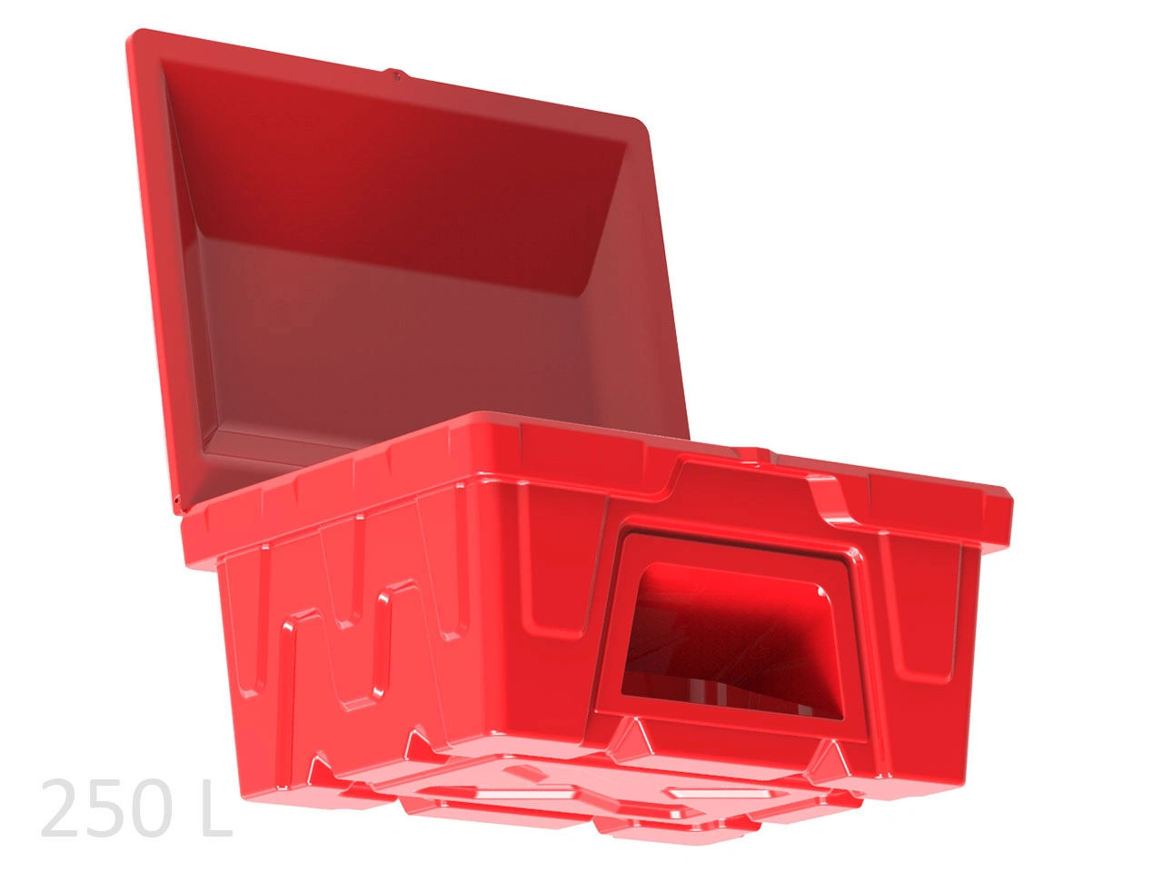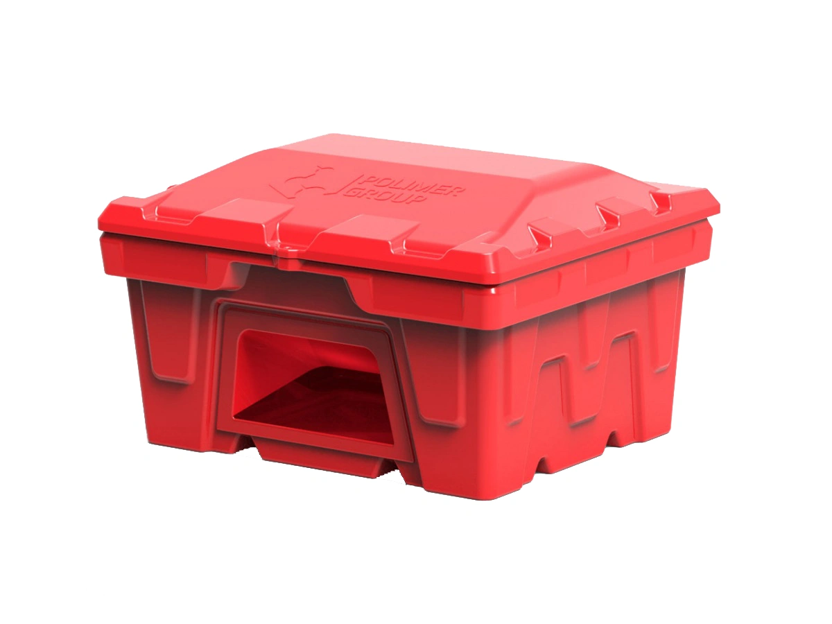 Объем контейнера для песка 250 л. Предназначен для хранения песка, применяемого для тушения пожаров на заправочных станциях. Изготовлен из полиэтилена методом ротоформования, что придает особую прочность.