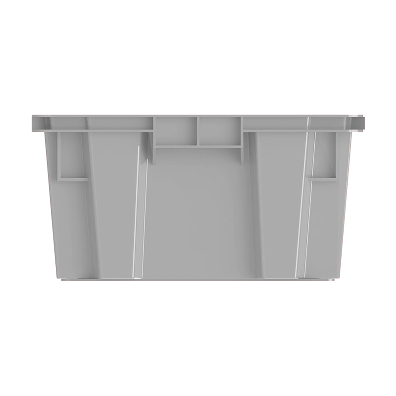 Пустые ящики вкладываются друг в друга, экономя места до 60% при транспортировке и хранении. Устойчиво штабелируются друг на друга при повороте на 180 градусов.
