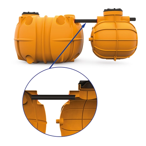 В комплект входит винтовая крышка. При установке ёмкости на определенную глубину использутся удлиняющие горловины, которые при этом вкручиваются в тело емкости, а крышка закручивается на горловину.